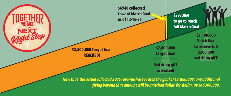 As the year comes to a close, we are striving to finish 2025 in a strong financial position, and as such, we have some remarkable news to share. As you may know, a few families felt a specific calling from the Lord, and discerned a desire not only to give generously to the work God is doing here at Grace, but also to invite others to join them in this effort. These families have pledged to provide a match up to $300,000 for all operating fund gifts given to Grace in excess of our current 2025 collections target of $2,800,000.